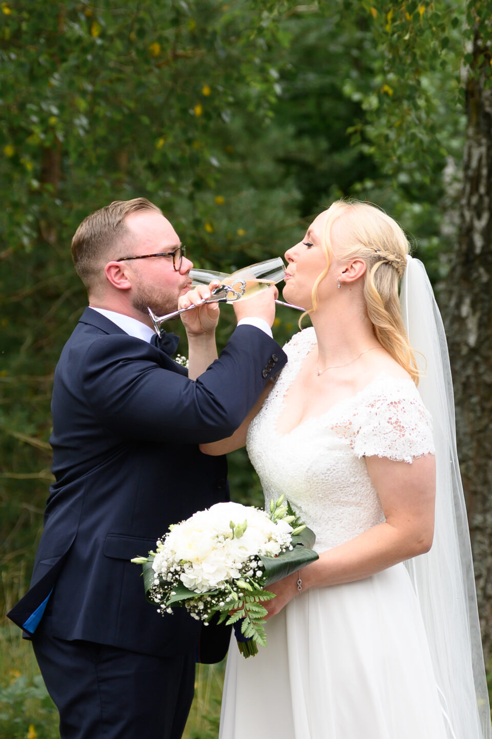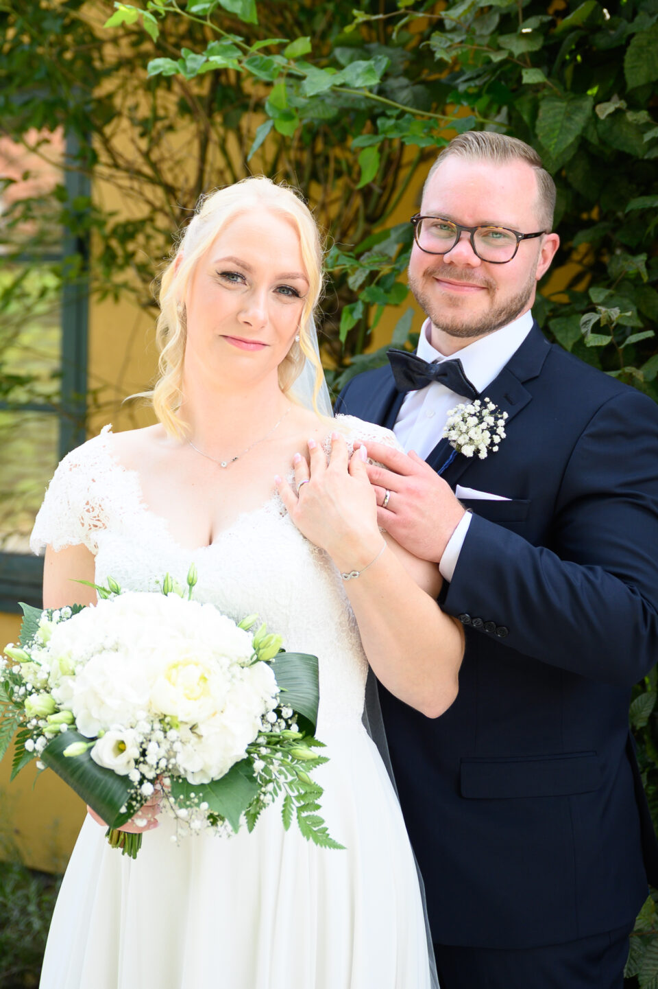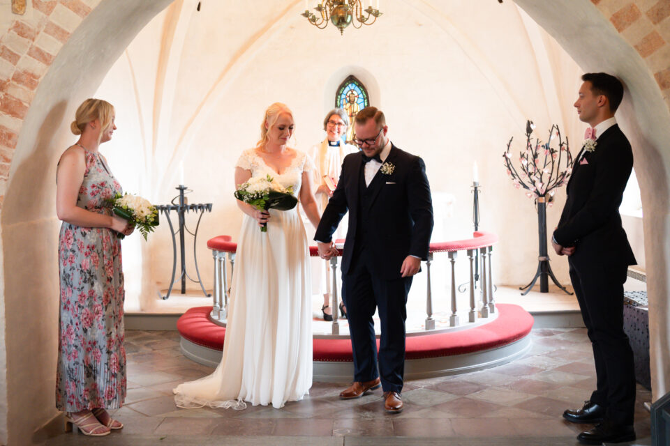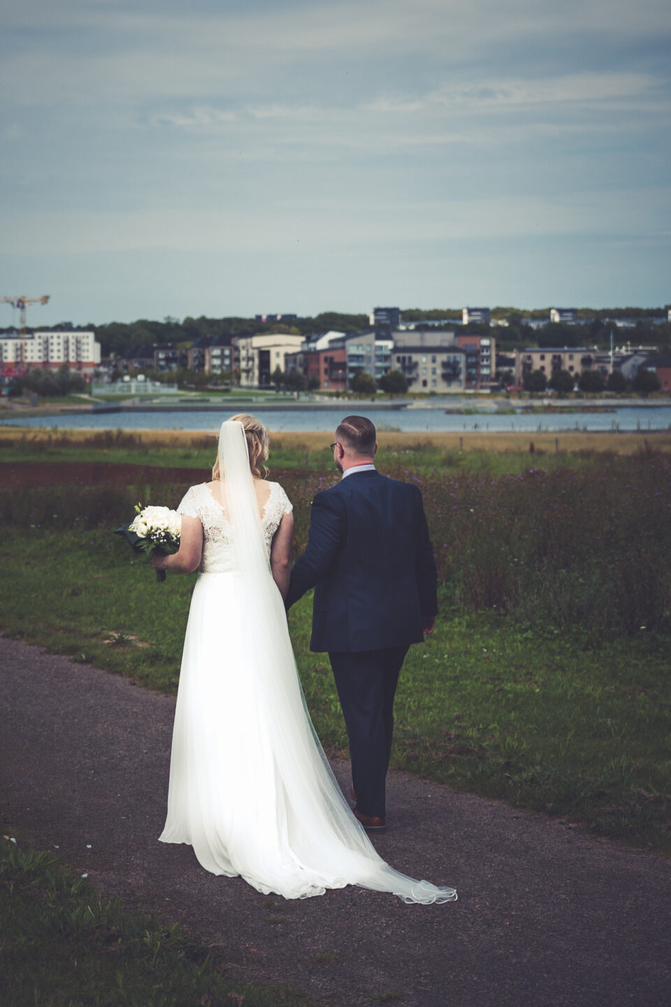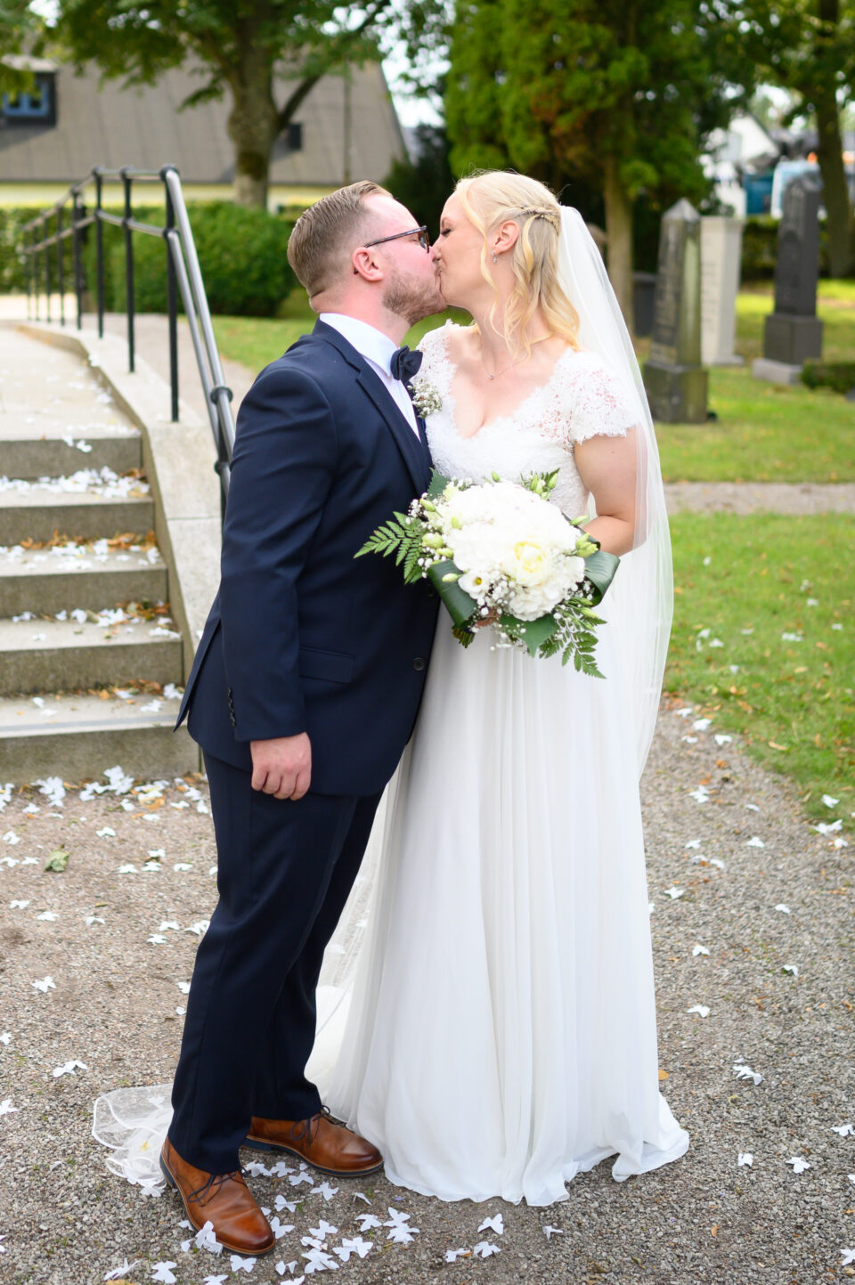 Amanda och Ted, detta kärleksfulla och varma par fick jag äran att föreviga i St Råby Kyrka. Kyrkan där mina föräldrar vigdes 1972, en speciell känsla som fyllde mig med glädje och kärlek. Tänk alltså! Jag jobbar som bröllopsfotograf och fotograferar ett fantastiskt bröllop i just den kyrkan där mamma och pappa sa ja till varandra, lite overkligt. Hur som helst, jag var som vanligt, i väldigt god tid. Rekade platsen som vi bestämt för First Look, mitt på 30-vägen utanför kyrkan skulle den vara. Den lilla gatan som passerar genom St Råby är supergullig med jättefina hus och där tänkte jag att porträttfotograferingen skulle ske. Amandas brors flickvän var utsedd till tärna och Amandas bror bestman. Tärna och bestman hade det stora uppdraget att vara trafikvakter, det kör ju trots allt bilar där även om det är en liten gata. Det blev en hel del tutande och hejarop från passerande bilar och vi skrattade gott åt spektaklet som fotografen ställt till med. Efter vigseln åkte vi till Dalby där festen skulle hållas. Härliga gruppbilder blev det med familj och vänner. Regnet hängde i luften och när det var dags för mig att dra mig därifrån och gästerna gick in i tältet, då öppnade sig himlen och det regnade enorma mängder. Men, wow – vilken dag jag fick dela med detta fantastiska brudpar.