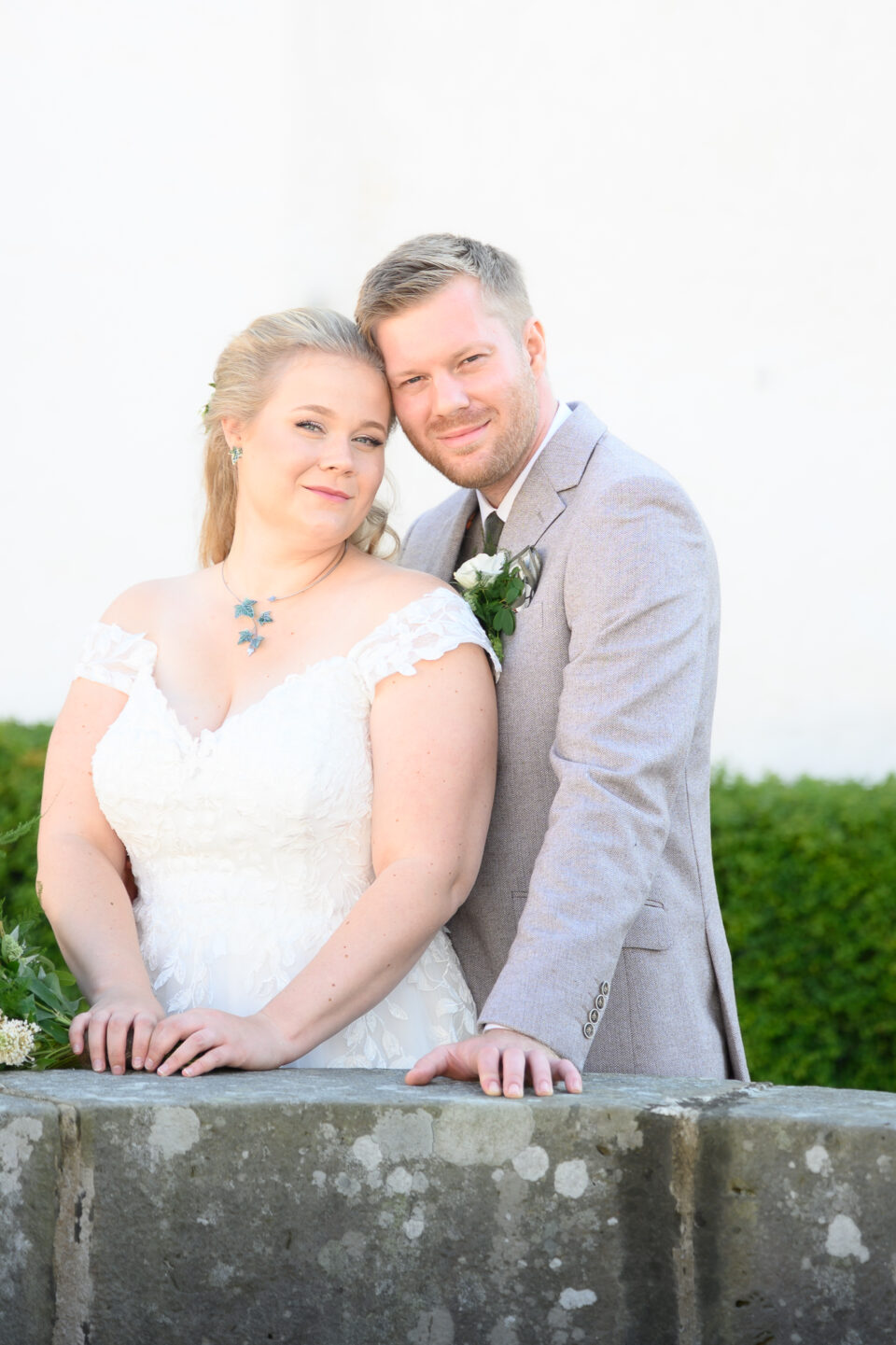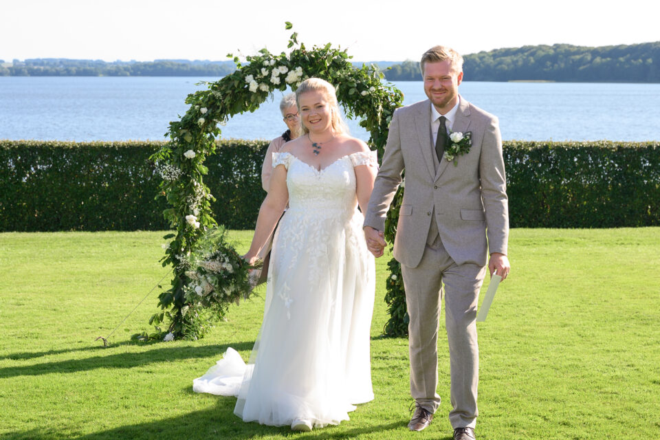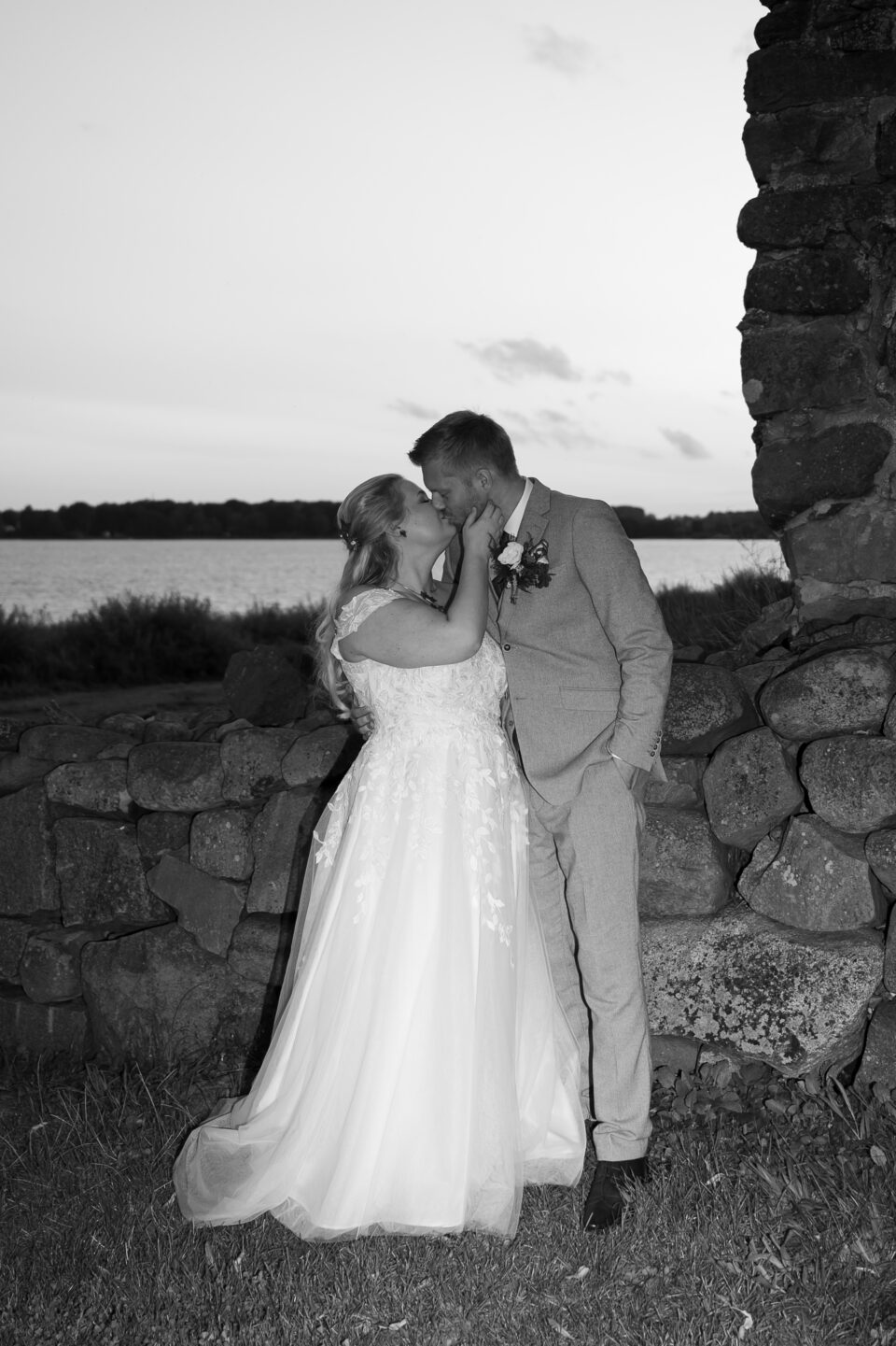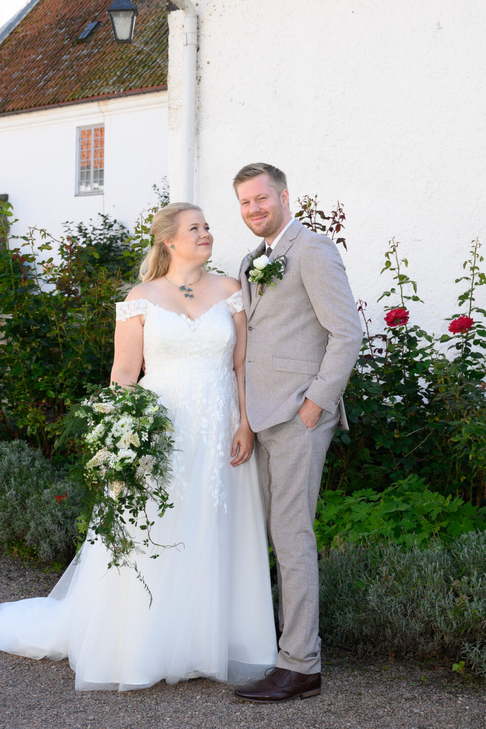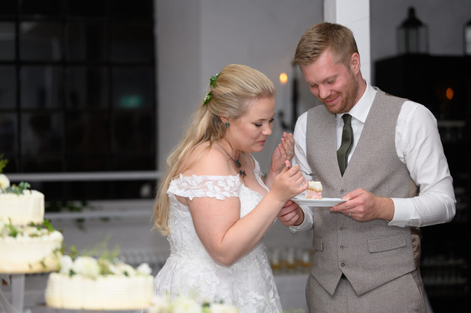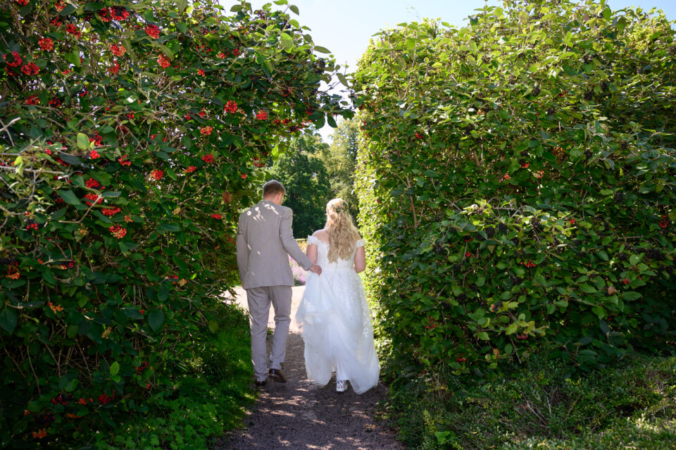 Jag träffade Emma och James första gången ungefär ett år innan dom skulle vigas, Emma hade blivit rekommenderad mig via en kollega till henne och vän till mig. Tänk så mycket det betyder! Både för mig och brudparet, en rekommendation. Någon som vet hur jag jobbar och som vet resultatet, det bästa betyget är att bli rekommenderad. Nåja, jag anlände Bosjökloster i god tid för att fotografera Emmas förberedelser. Fåglarna kvittrade och solen stekte på, det skulle bli en underbar sommardag. Jag tog mina kameror och gick en runda i slottsparken för att säkerställa att platsen för First Look fanns kvar, eller rättare sagt så att inte någon bestämt sig för att ha sin familjepickning just där. Men, det var lugnt – några förbipasserande tittade och log. James och hans bestman, tillika Emmas bror höll till inne i salongen på slottet så dit gick jag också såklart. Några bilder på dessa snygga killar sedan gick jag tillbaka för att hämta min utrustning. First look here we go! James kom till den utvalda platsen, nervös och varm. Vi stod i skuggan och inväntade den vackra bruden, nervositeten steg och plötsligt så var hon där. Några meter bakom James till hon på mitt klartecken tog några steg framåt, rörde vid James på axeln och så stod dom där till mitt klartecken att James kunde vända sig om. Jag älskar First Look!! Det är en helt underbar känsla att se reaktionen hos både brud och brudgum, den stilla kramen efter första blicken. Kärlek. Vi tog oss runt i den stora slottsparken, där vi några veckor tidigare rekat ut de bästa platserna för bröllopsfotografering. Jag hade god hjälp av de två tärnorna och bestman, dom rullade kameraväskan och lyfte släp, höll blommor och serverade vatten. Alldeles utmärkta assistenter! Efter porträttfotograferingen drog vi oss tillbaka in i salongen där Emma och James fick en behövlig paus innan vigseln. Jag tog mig an de ankommande gästerna, fotograferade alla dessa färgglada damer med hattar. Inte alla, men damerna från Wales – James familj dom var iklädda små söta hattar precis som sig bör. En bröllopsbåge klädd i vita rosor och grönt mot Ringsjöns glittrande vatten, magiskt. En supertrevlig vigselförrättare som förstod vikten av att inte “stå i centrum” som hon uttryckte det, precis…. Det är ju brudparet som ska stå i centrum, inte vigselförrättaren. Även på bilderna alltså! Vigsel, gratulationer med vita rosblad, bubbel, kramar och sedan gruppfotografering med oändligt många konstellationer. Allt var uppstyrt sedan tidigare så den ena gruppen efter den andra kom in på borggården där vi skulle ta bilderna, i skuggan. Middag, tal, sång, solnedgångsbilder, tårta och first dance. En dag som innehöll allt och lite till! Tack för att just jag fick det stora förtroendet att föreviga er stora dag.