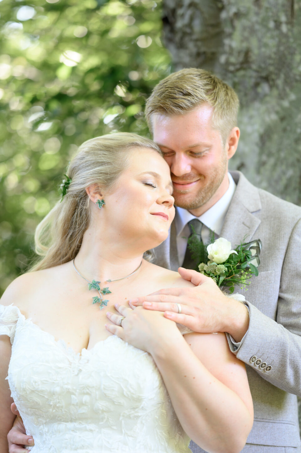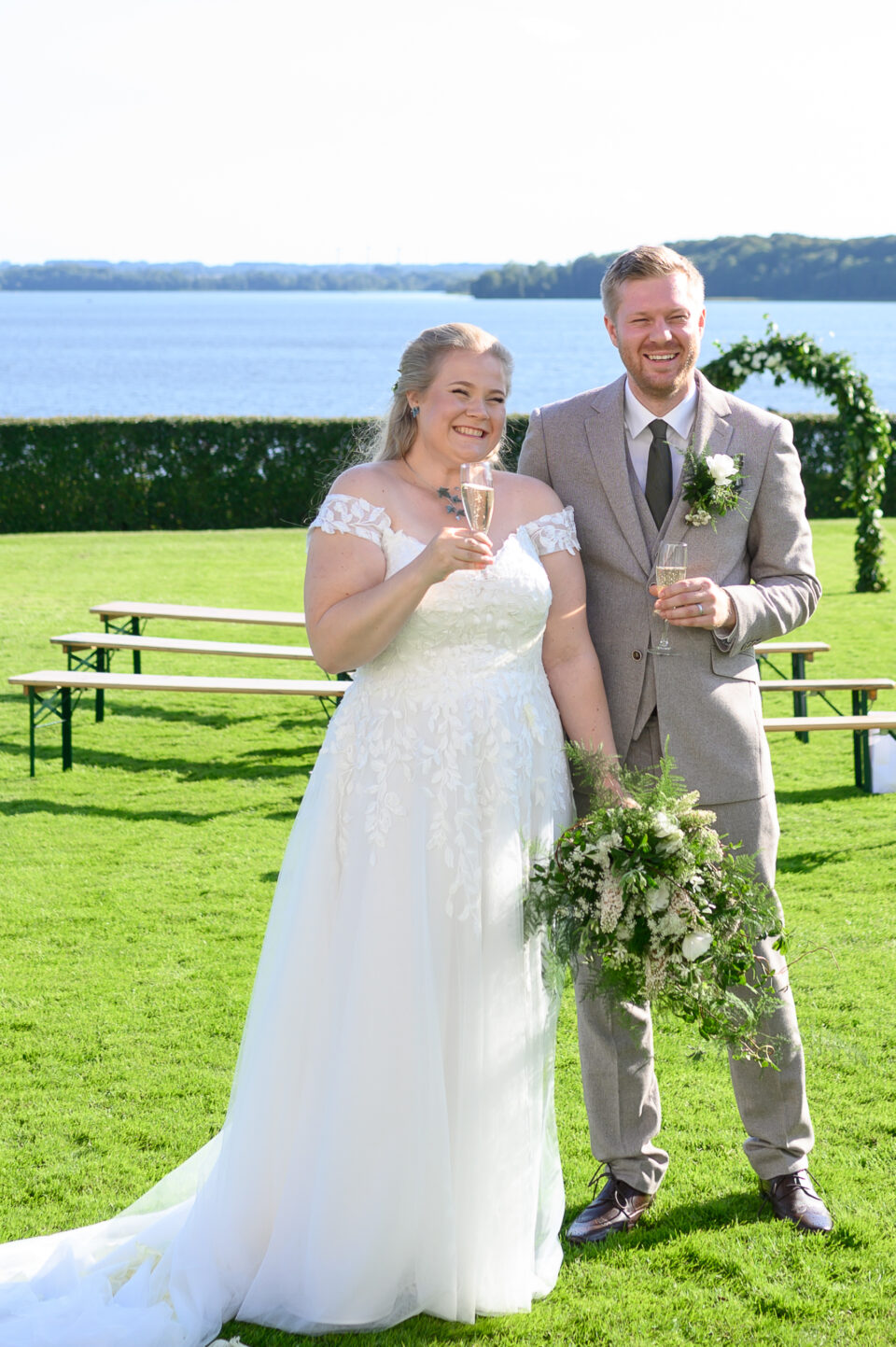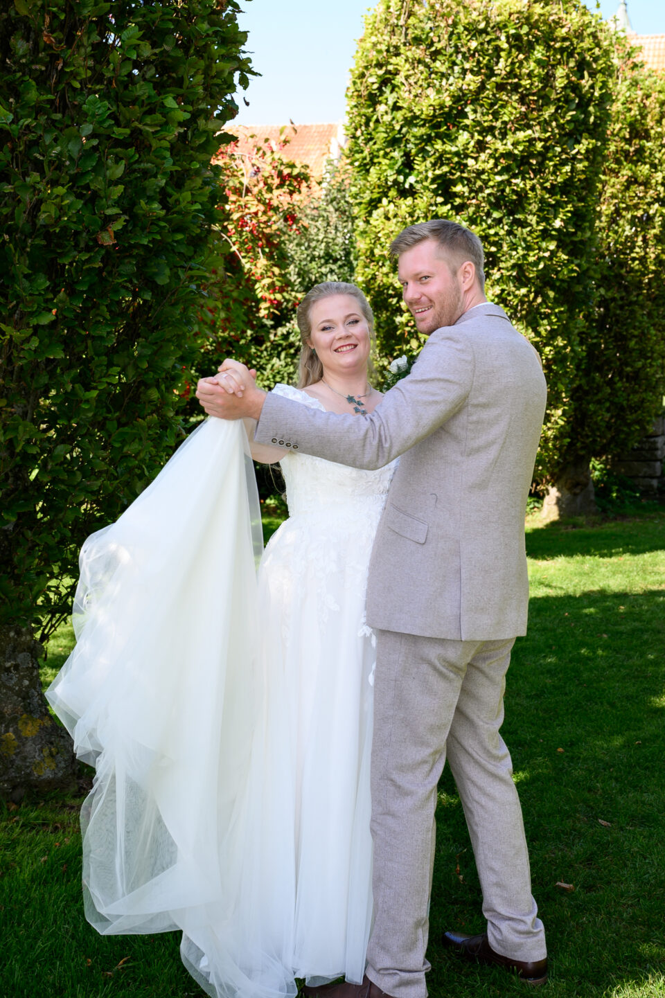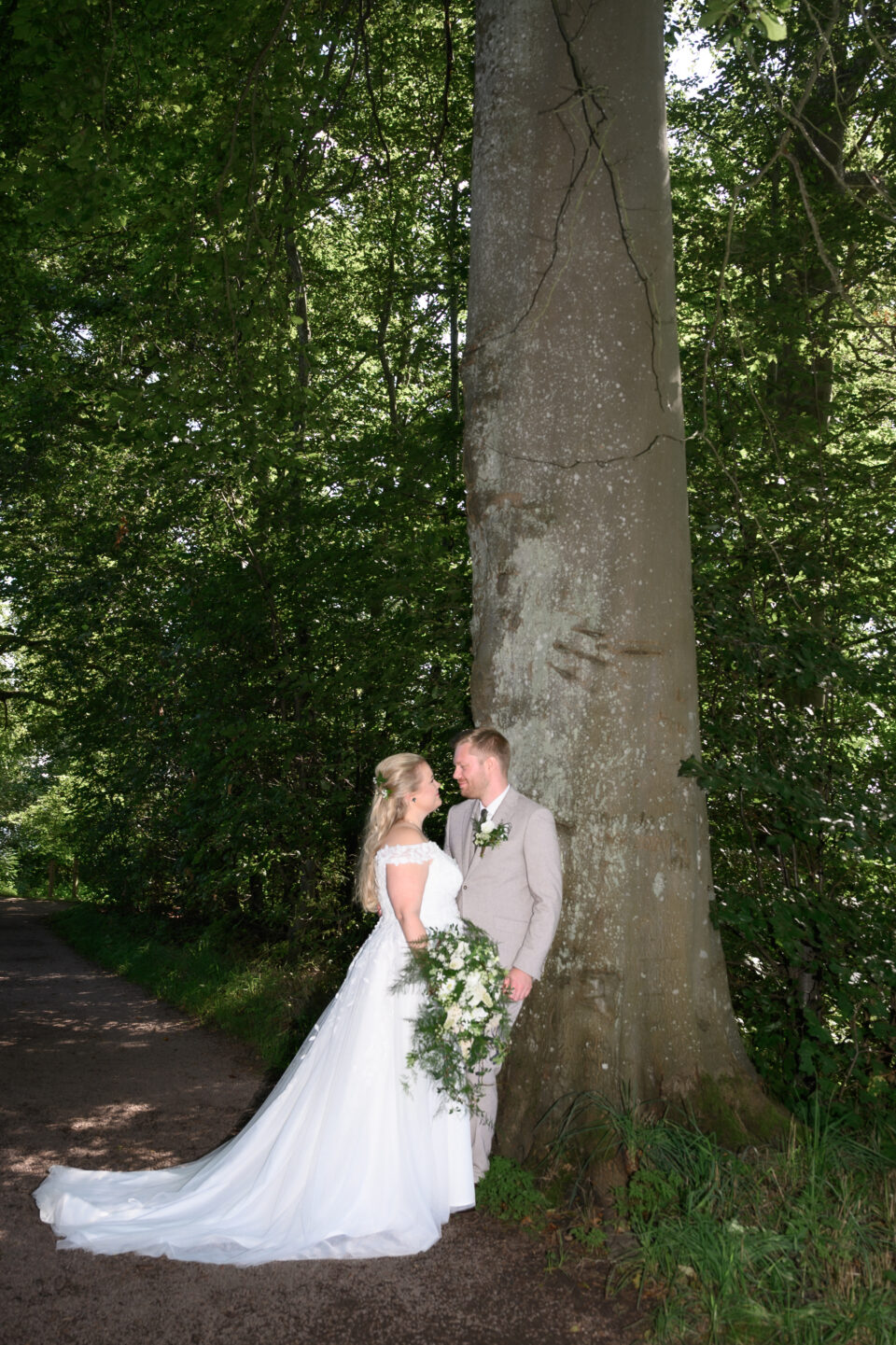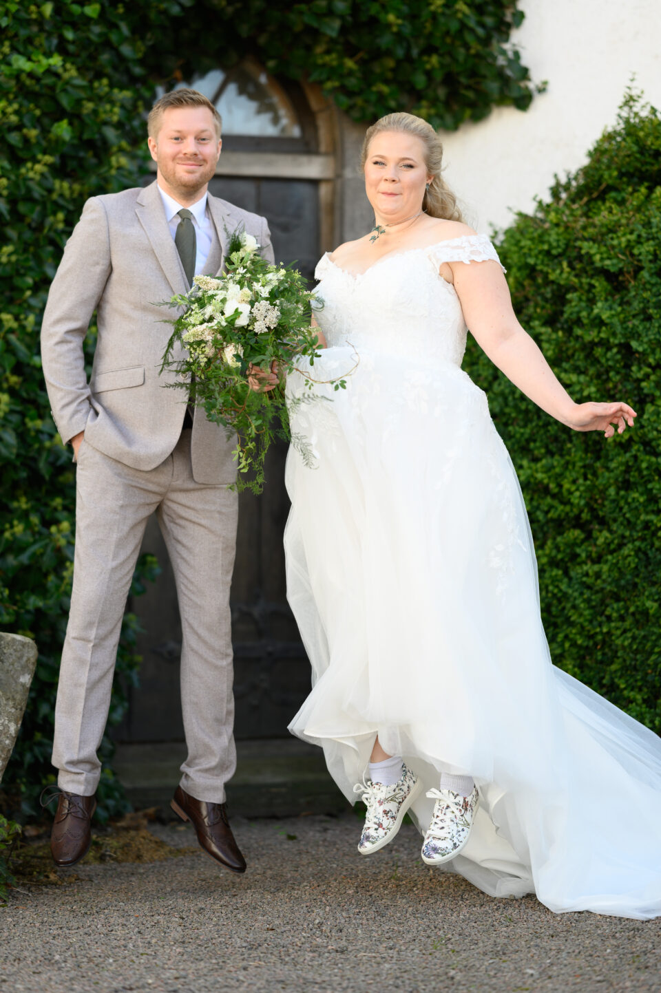 Jag träffade Emma och James första gången ungefär ett år innan dom skulle vigas, Emma hade blivit rekommenderad mig via en kollega till henne och vän till mig. Tänk så mycket det betyder! Både för mig och brudparet, en rekommendation. Någon som vet hur jag jobbar och som vet resultatet, det bästa betyget är att bli rekommenderad. Nåja, jag anlände Bosjökloster i god tid för att fotografera Emmas förberedelser. Fåglarna kvittrade och solen stekte på, det skulle bli en underbar sommardag. Jag tog mina kameror och gick en runda i slottsparken för att säkerställa att platsen för First Look fanns kvar, eller rättare sagt så att inte någon bestämt sig för att ha sin familjepickning just där. Men, det var lugnt – några förbipasserande tittade och log. James och hans bestman, tillika Emmas bror höll till inne i salongen på slottet så dit gick jag också såklart. Några bilder på dessa snygga killar sedan gick jag tillbaka för att hämta min utrustning. First look here we go! James kom till den utvalda platsen, nervös och varm. Vi stod i skuggan och inväntade den vackra bruden, nervositeten steg och plötsligt så var hon där. Några meter bakom James till hon på mitt klartecken tog några steg framåt, rörde vid James på axeln och så stod dom där till mitt klartecken att James kunde vända sig om. Jag älskar First Look!! Det är en helt underbar känsla att se reaktionen hos både brud och brudgum, den stilla kramen efter första blicken. Kärlek. Vi tog oss runt i den stora slottsparken, där vi några veckor tidigare rekat ut de bästa platserna för bröllopsfotografering. Jag hade god hjälp av de två tärnorna och bestman, dom rullade kameraväskan och lyfte släp, höll blommor och serverade vatten. Alldeles utmärkta assistenter! Efter porträttfotograferingen drog vi oss tillbaka in i salongen där Emma och James fick en behövlig paus innan vigseln. Jag tog mig an de ankommande gästerna, fotograferade alla dessa färgglada damer med hattar. Inte alla, men damerna från Wales – James familj dom var iklädda små söta hattar precis som sig bör. En bröllopsbåge klädd i vita rosor och grönt mot Ringsjöns glittrande vatten, magiskt. En supertrevlig vigselförrättare som förstod vikten av att inte “stå i centrum” som hon uttryckte det, precis…. Det är ju brudparet som ska stå i centrum, inte vigselförrättaren. Även på bilderna alltså! Vigsel, gratulationer med vita rosblad, bubbel, kramar och sedan gruppfotografering med oändligt många konstellationer. Allt var uppstyrt sedan tidigare så den ena gruppen efter den andra kom in på borggården där vi skulle ta bilderna, i skuggan. Middag, tal, sång, solnedgångsbilder, tårta och first dance. En dag som innehöll allt och lite till! Tack för att just jag fick det stora förtroendet att föreviga er stora dag.