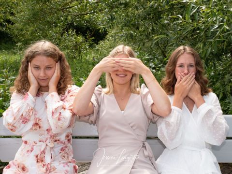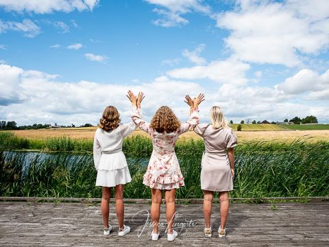 Alva, Klara och Jonna, tre bästisar som skulle åkt på konfirmationsresa till England. Då pandemin kom ställdes resan in och tjejerna blev såklart väldigt besvikna. Då var det en förälder som kom på att tjejerna skulle kunna få en minnesvärd upplevelse att glädjas åt framöver, en liten tröst i det stora hela. Tjejerna överraskades med konfirmationsfotografering/kompisfotografering! Det blev både gruppbilder men även enskilda på var och en av tjejerna. Föräldrarna ville inte att bilderna skulle hamna på datorn utan ville gärna att jag skulle hjälpa till med fotoböcker. Alva, Klara och Jonna har nu vars en personlig fotobok.