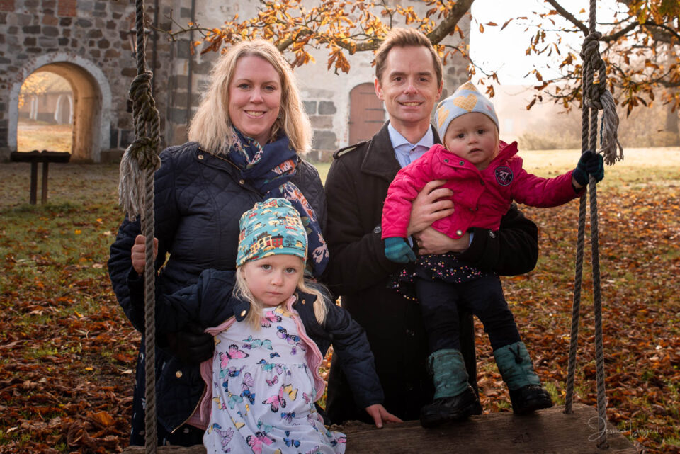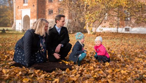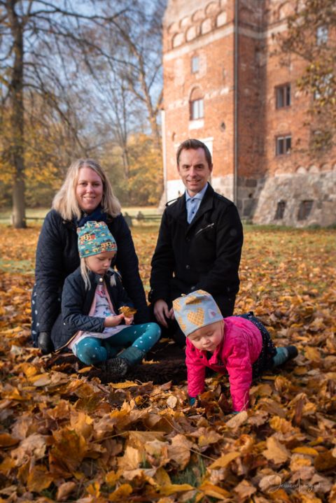 Fallna löv och en krispig morgon, en härlig dag för familjefotografering i Borgeby Slottspark!