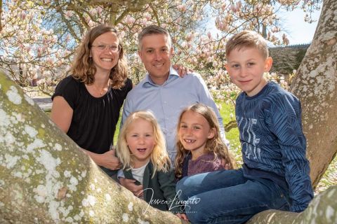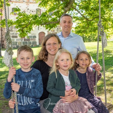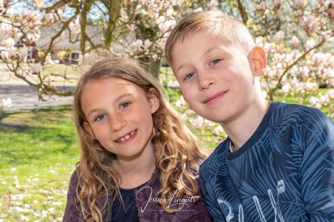 Trots rinnande näsa och tårfyllda ögon kunde pappa Månsson genomföra fotograferingen, pollenallergi när den är som värst! Men vad gör man inte för att få trevliga bilder på familjen när Magnoliaträden blommar i Borgeby Slottspark.
