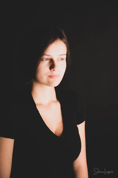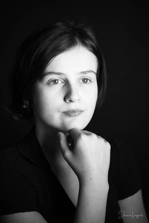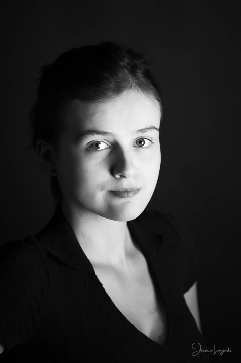 När jag får välja fritt mellan mina bakgrunder så är det oftast den svarta jag väljer. Visst har jag blivit ifrågasatt om hur jag kan välja en svart bakgrund när personen framför kameran har mörkt hår, eller är mörkhyad. Det spelar faktiskt ingen roll, det är ljussättningen som styr. Valet styrs såklart av vad det är kunden vill förmedla med sina bilder. I detta fallet var det rena porträtt och jag fick fria händer.