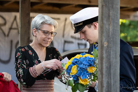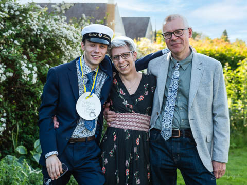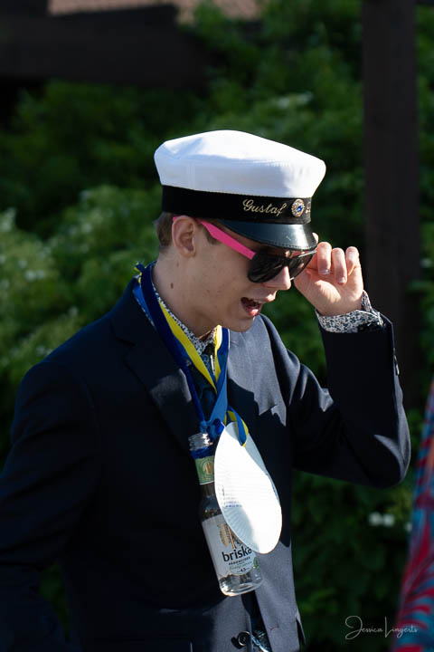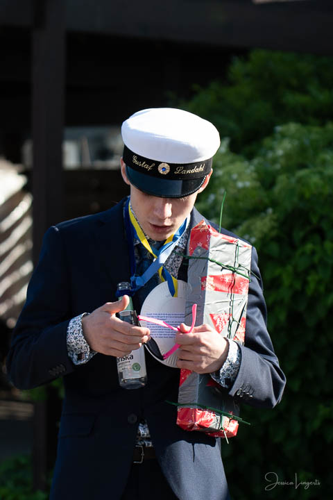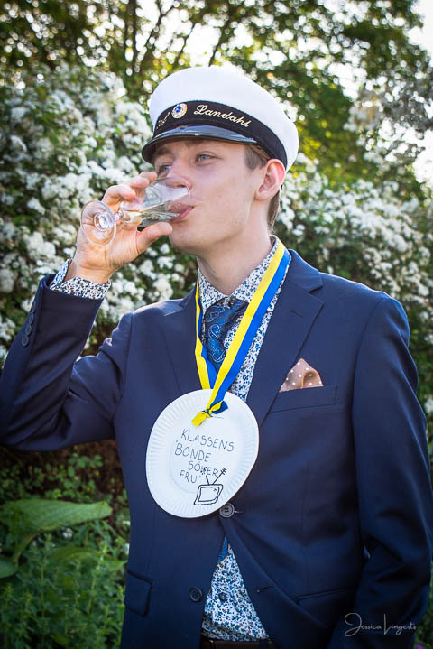 Jag har fotograferat studenter tidigare, men då har det varit en dedikerad “studentfotografering”. Nu fick jag vara med på ett mysigt och väldans trevligt “hemma-hos” studentfirande. När Gustafs föräldrar bokade mig för att föreviga Gustafs student så bestämde vi såklart en exakt dag, men en ungefärlig tid. Min magkänsla sa att jag bör vara på plats tidigt, min magkänsla har aldrig varit så rätt! Jag hann knappt packa upp kameraväskan förrän vi förstod att huvudpersonen var på ingång! Trädgårdsfest och studentfirande när det är som bäst.