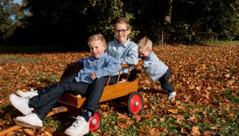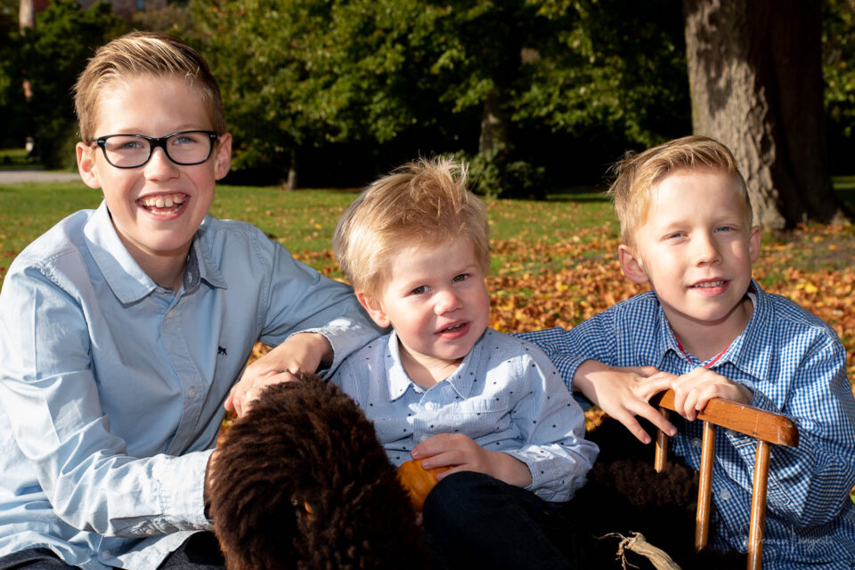 Gyllene löv, solsken och bus. Edvin, Anton och Oliver.