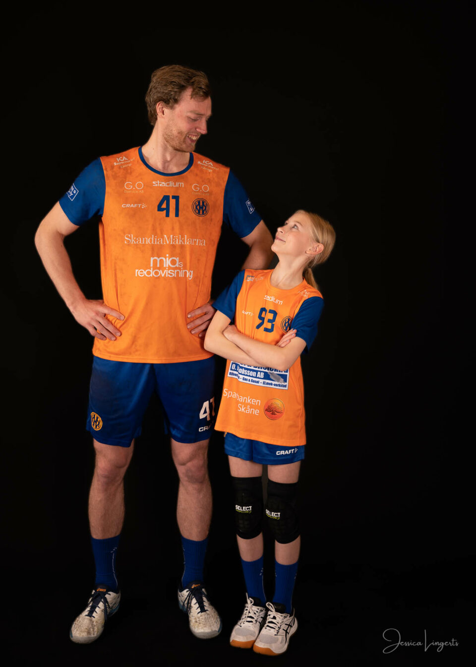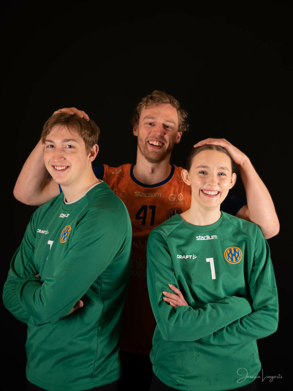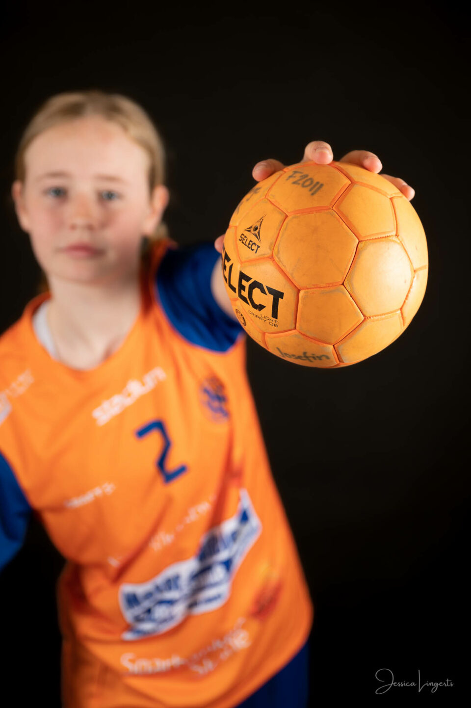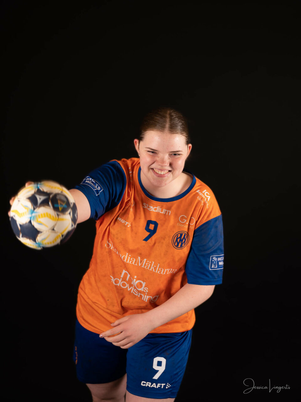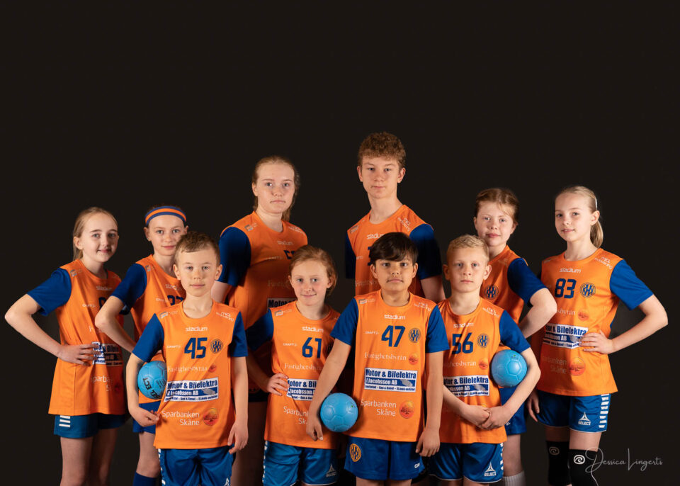 Det började med några små killar från bollskolan, en handfull orangeklädda barn med små bollar. Det slutade med att hela min ateljé var knökfull av spelare från tre äpplen höga till de som var över två meter, ledare, föräldrar, bollar och kläder. Jag klättrade upp och ner för min stege beroende på vem som skulle stå framför kameran. Av alla spelare och alla bollar som var i rörelse så var det endast en boll som testade om min skärmvägg med tavlor höll, det gjorde den. Vilken härlig dag vi hade! Tack för ett mycket roligt uppdrag KHK och sponsoransvarig Mattias Olsson.