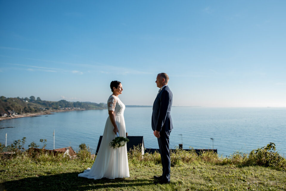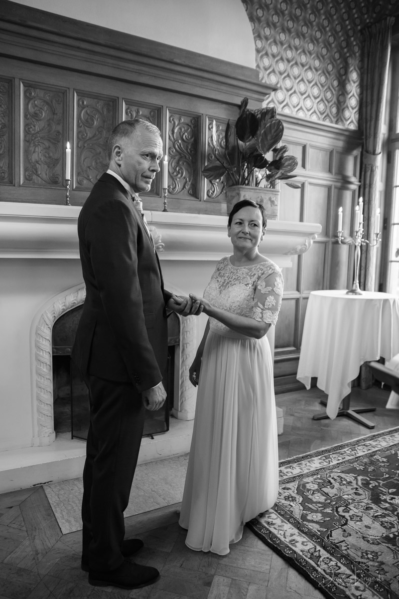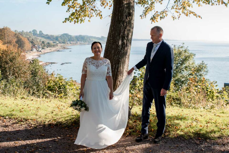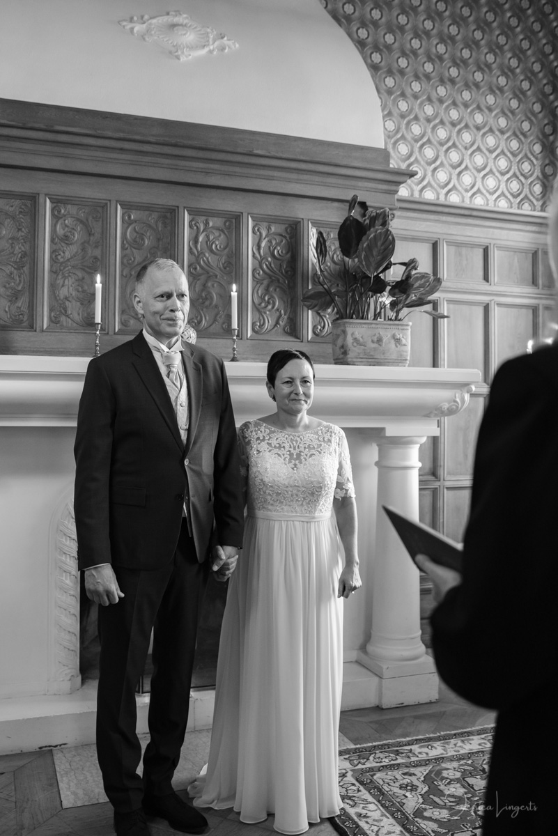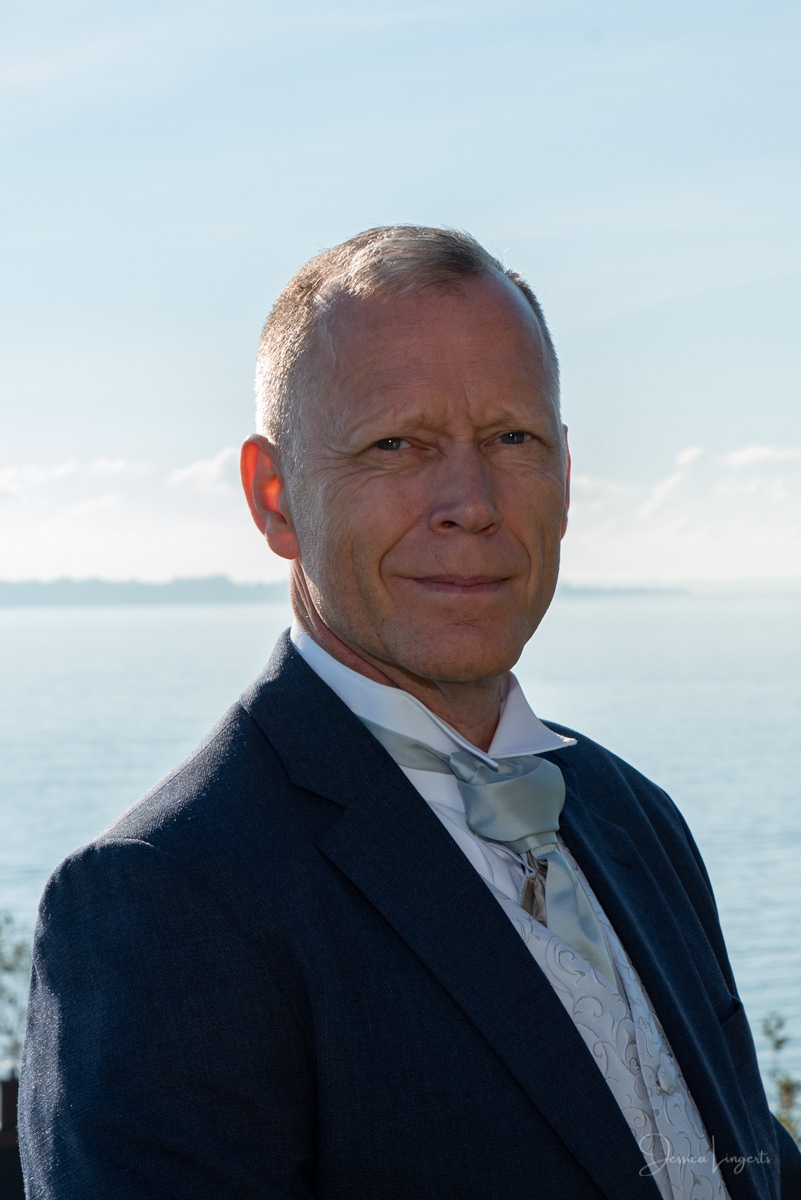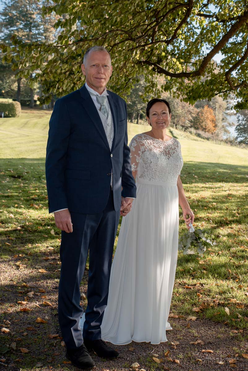 När det slingrande vildvinet längs väggen börjat ändra färg och höstsolen fortfarande värmde vigdes Mats och Kersti i en sal på Örenäs Slott. Då väderprognosen varit osäker vågade brudparet inte bestämma sig för att hålla vigseln utomhus, även om vädergudarna trots allt bestämde sig för att vara på den muntra sidan den dagen. Porträttfotograferingen i parken gjordes i sagolikt väder, blå himmel och knappt någon vind med Öresund och Ålabodarna som bakgrund. Breathtaking!