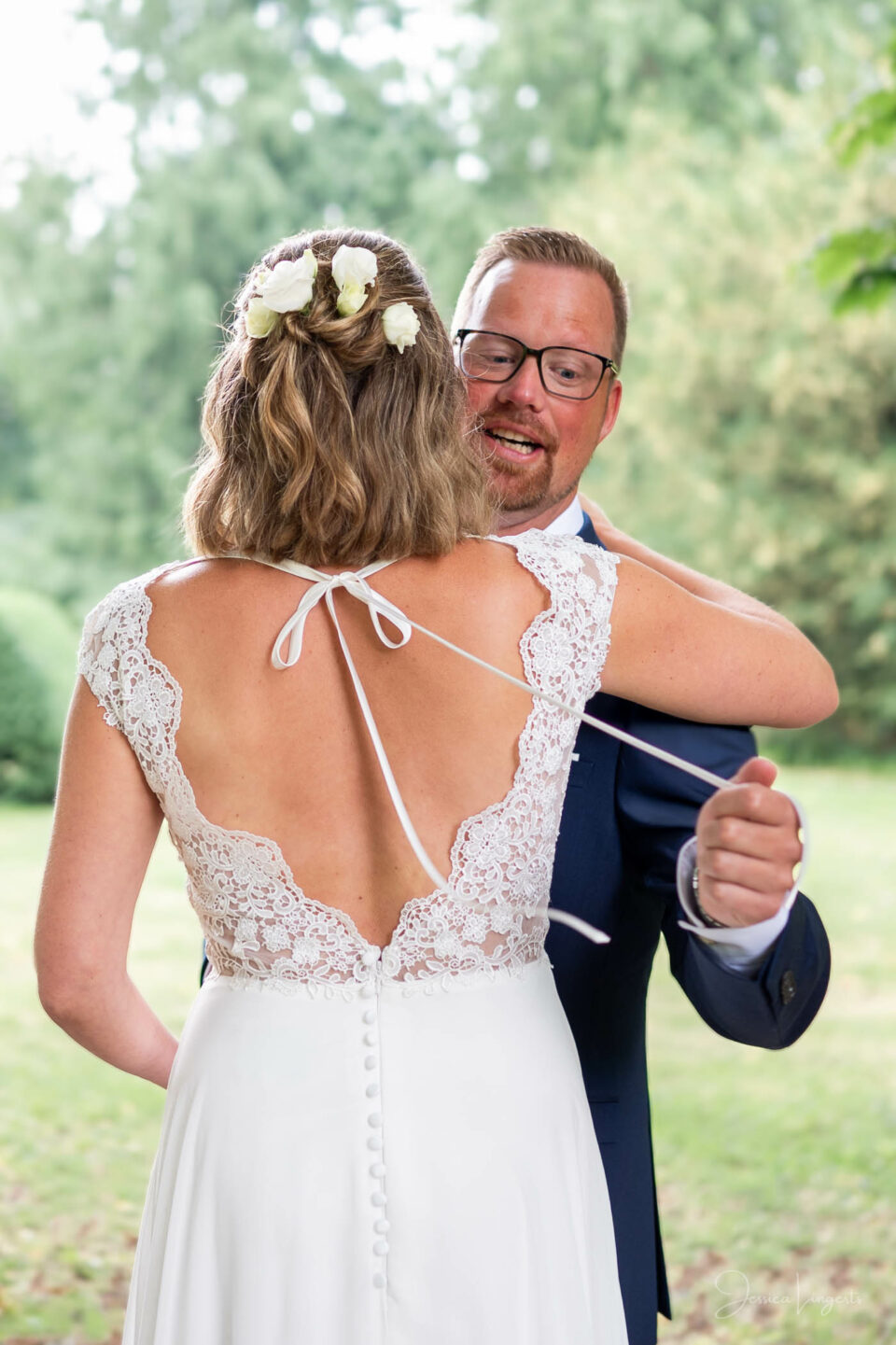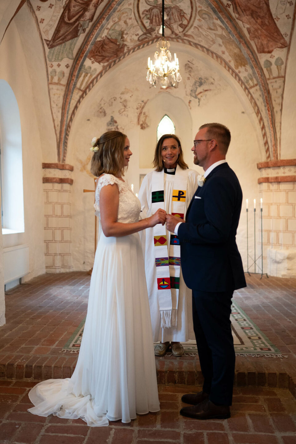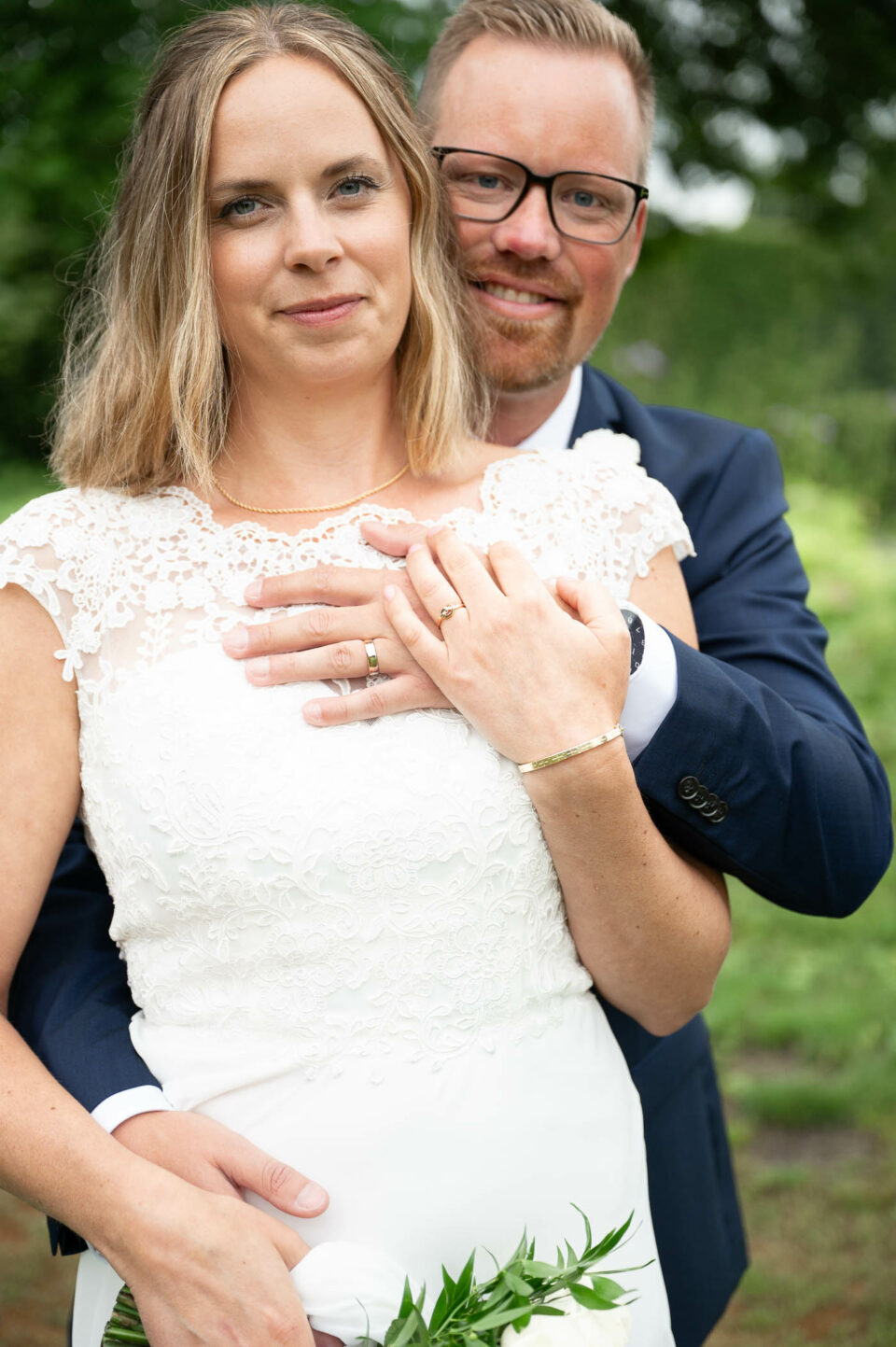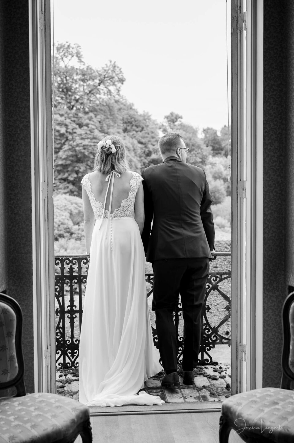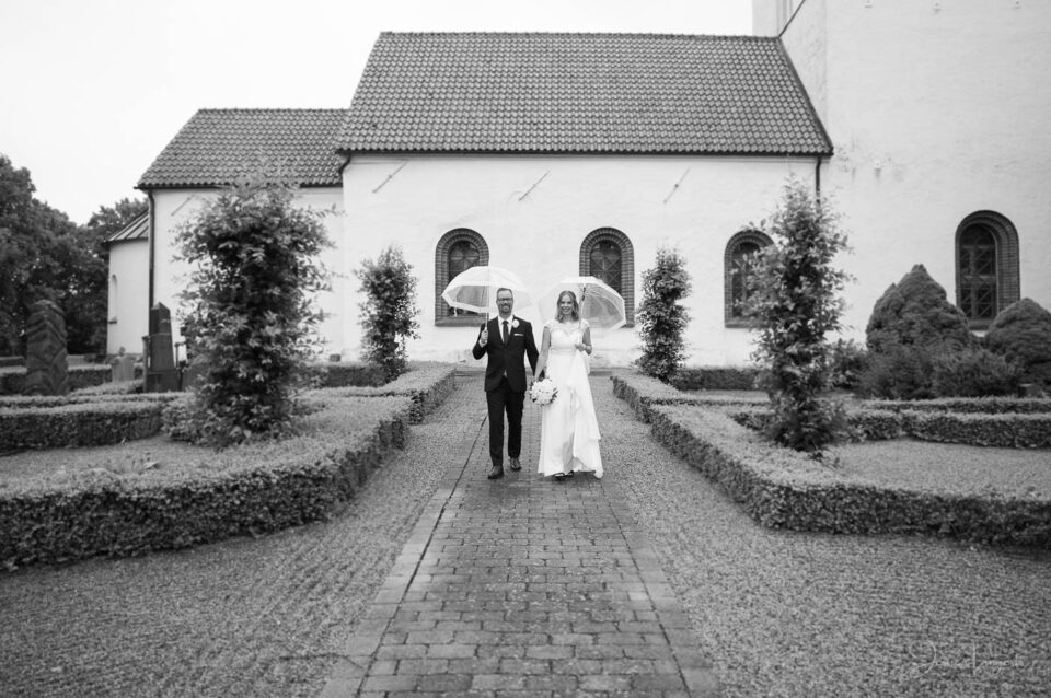 Brudparet Mette och Micke tillbringade natten före bröllopet på Ellinge Slott där festen sedermera skulle hållas. Jag kom lite tidigare än bestämt för att hinna fotografera Mettes förberedelser, därefter satte vi igång med porträttfotograferingen. Regntunga moln och duggregn till trots fick vi till världens härligaste fotografering. Vi började med First look och därefter tog vi oss runt i den fantastiska slottsparken. Efter ett tag anslöt även deras två härliga pojkar. Vigsel i Lilla Harrie Kyrka med präst Johanna Juhlin där stämningen var hög och skratten många. Mettes syster Petra sjöng underbart vackert i kyrkan, inte ett öga var torrt. Efter vigseln blev det lite körigt då jag behövde hålla ett paraply samtidigt som jag fotade brudparets entré och gratulationerna, regnet öste ner. Tillbaka till Ellinge Slott där mingel fick hållas inomhus, men även där var det feststämning från början till slut. Gruppfotograferingen togs i ösregn, men snabb som blixten var jag där uppe på stegen så brudparet och gästerna behövde inte stå där ute så länge. En fantastisk dag med ett underbart brudpar som inte överhuvudtaget lät sig påverkas av regnet!