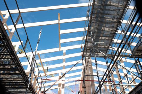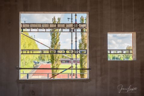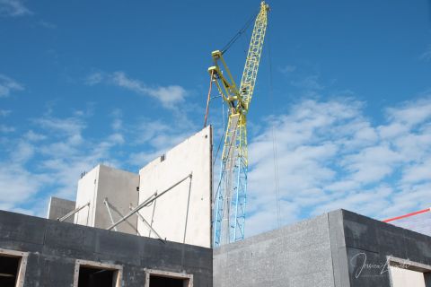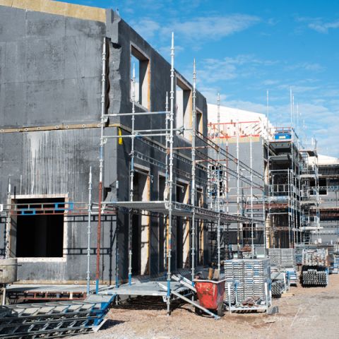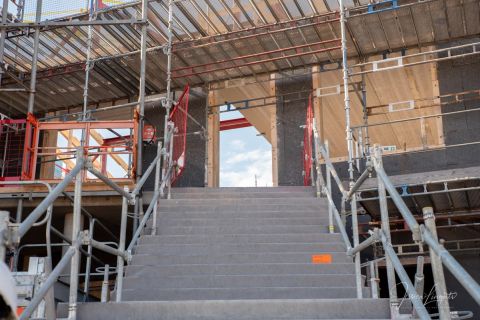 Miljöbilder från Vikhem i Staffanstorp, här byggs Internationella Engelska Skolan och Projektstyrning Syd AB följer projektet noggrant. Att komma till en sådan här stor byggarbetsplats kräver hjälm, varselväst och skor med stålhätta – jag var självklart utrustad. Utsikten från taket var vidunderlig.