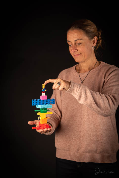 Birgitta önskade nya bilder till sin hemsida och till sociala medier. När Birgitta utbildar så använder hon både lego och en liten smurf som arbetsredskap och verktyg för diskussioner. Det som representerar företaget ska ju givetvis vara med på bild!
