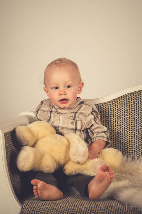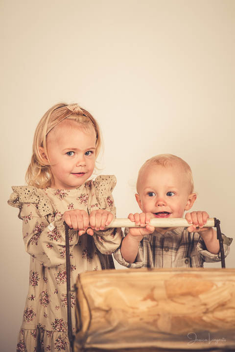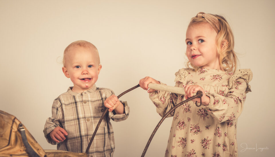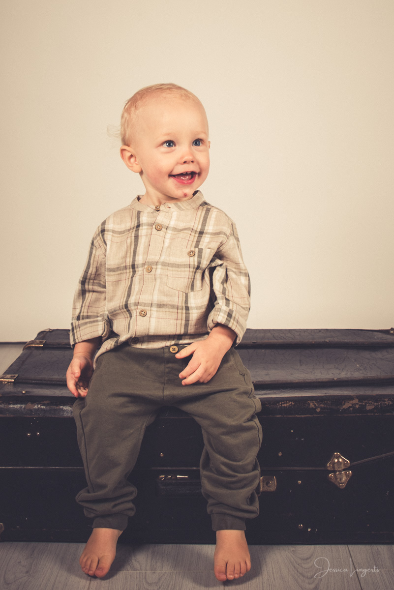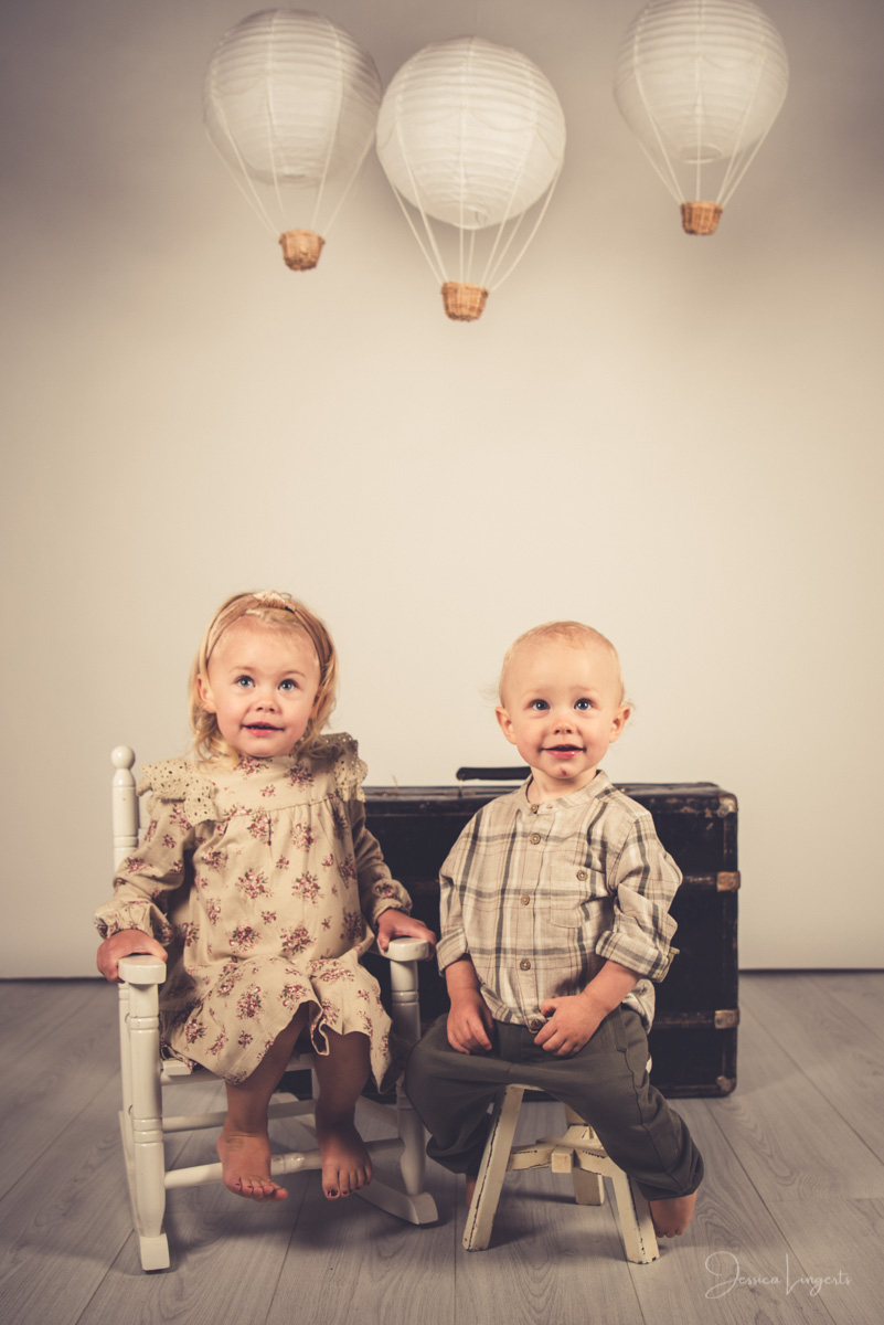 När Walter döptes fick han (hans föräldrar) en fotografering hos mig i doppresent, önskemålet var “vintage-redigering” vilket jag älskar! Två spralliga busungar fick leka av sig i studion där både gunga, luftballonger, koffert, plåtbil och gungstol kom väl till pass.